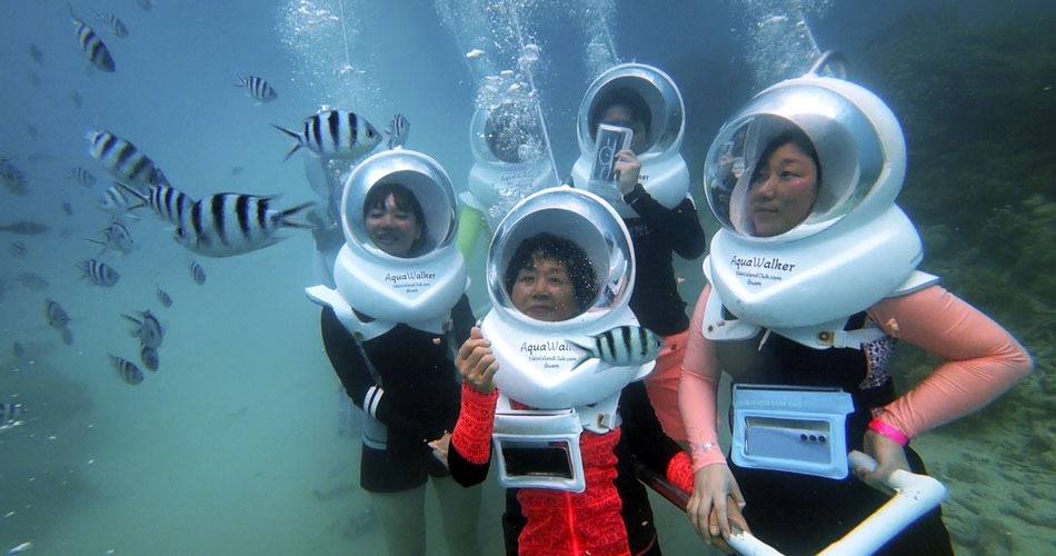 泳げなくても大丈夫です! グアムの透明な海の中を歩く特別な経験、アクアウォーク!重い装備なしでヘルメット一つでサンゴ礁と熱帯魚を一番近くで体験してみてください。忘れられない人生ショットと思い出を残すことができます。 今すぐアクアウォークでグアムの神秘的な海を感じてみましょう!